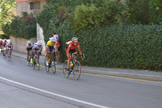En Fraga, ataques y más ataques de salida, casi siempre con uno de los cuatro kapelmurienses desplazados presente en los cortes; se hace la buena del día finalmente, con nuestro Miguel Ángel Ramo "Calimocho" en ella, demostrando una semana más que está que se sale. Entre el fuerte ritmo que se lleva delante y las dudas del pelotón y el trabajo de los equipos interesados atrás, hacen camino; estarán a punto de ser neutralizados en las postrimerías de la carrera, pero finalmente llegarán al pie del repecho final con una ventaja suficiente para jugársela entre ellos, resultando vencedor, una vez más, un fortísimo Dani Arnal (Vacuno/Iberia). Calimocho finalizó 4º, con calambres debido al esfuerzo y al ímpetu que puso por llevar adelante la fuga. Y atrás en el pelotón también se trabajó lo suyo... Una vez más, lo mejor del día la sensación de remar todos en una misma dirección, pese a lo mermados de efectivos que íbamos. Pero eso lo solucionamos este sábado cn 20 rosas en Sabi... : )